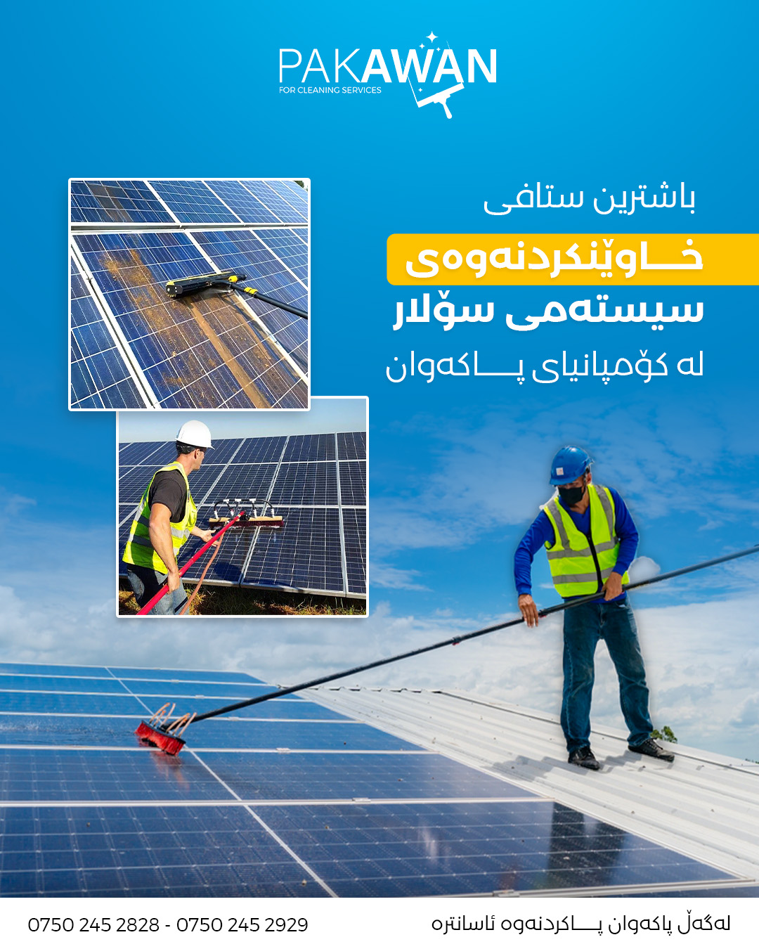 پاککردنەوەی پانێڵی خۆر بە شێوەیەکی پڕۆفیشناڵ و بەردەوام.